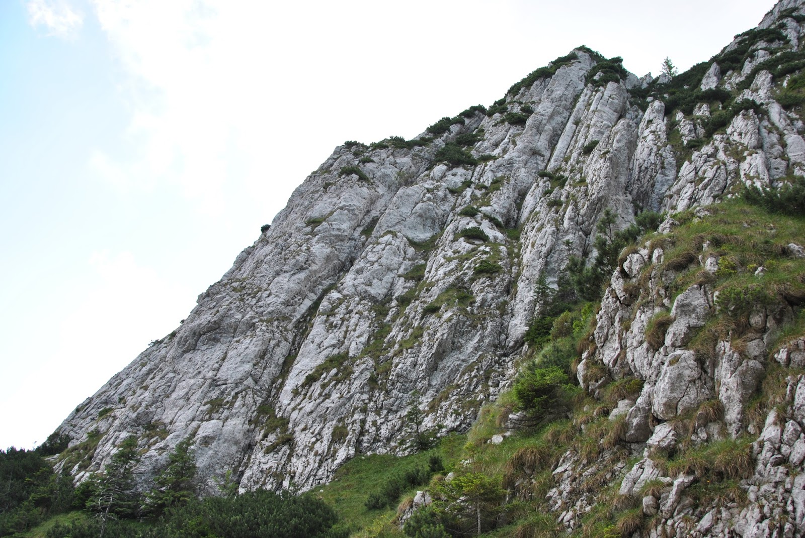 Abia aici începe partea alpină frumoasă. Trecem iarăşi pe stânga văii, facem o pauză de respiro pe un promontoriu (poate aici ar fi trebuit să mâncăm!) şi continuăm urmărind marcajele. Nici eu nu mai fusesem pe aici până acum şi sunt la fel de încântat ca şi colegii mei! Urcăm printre stânci şi printre creste până la intrarea în marele jnepeniş (nu grohotiş :D!)
