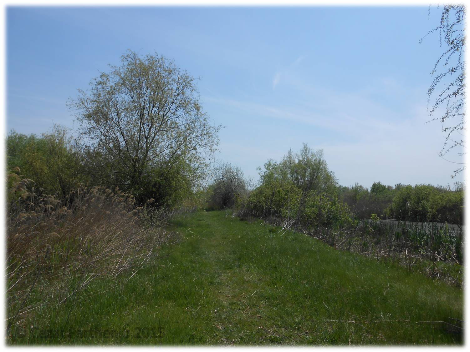 Până la canal ocolim iazul de decantare 3 și pe digul dintre iazurile 2 și 3 ajungem pe malul canalului.