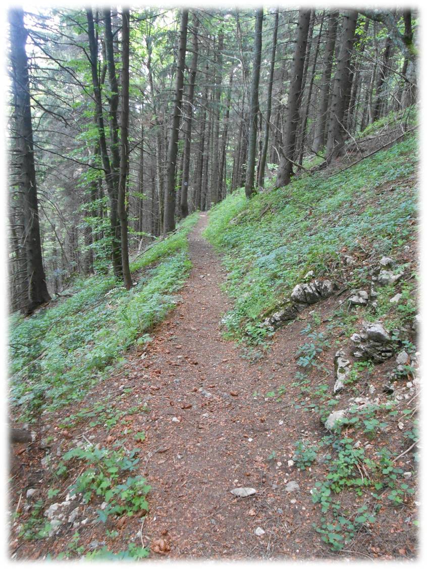nene de 85 de ani (și el iubitor de munte și de mișcare în tinerețe și chiar și acum!) și pornesc pe CA pe Lamba Mare. Trec de biserică și cotesc la dreapta pe drumul forestier care merge pe vale. Merg pe serpentine largi ușor în urcare, trec la un moment dat printre niște frunze de brusture imense, las pe laterale mai apoi niște grămezi de lemne tăiate și după vreo oră de mers (de la barieră) se